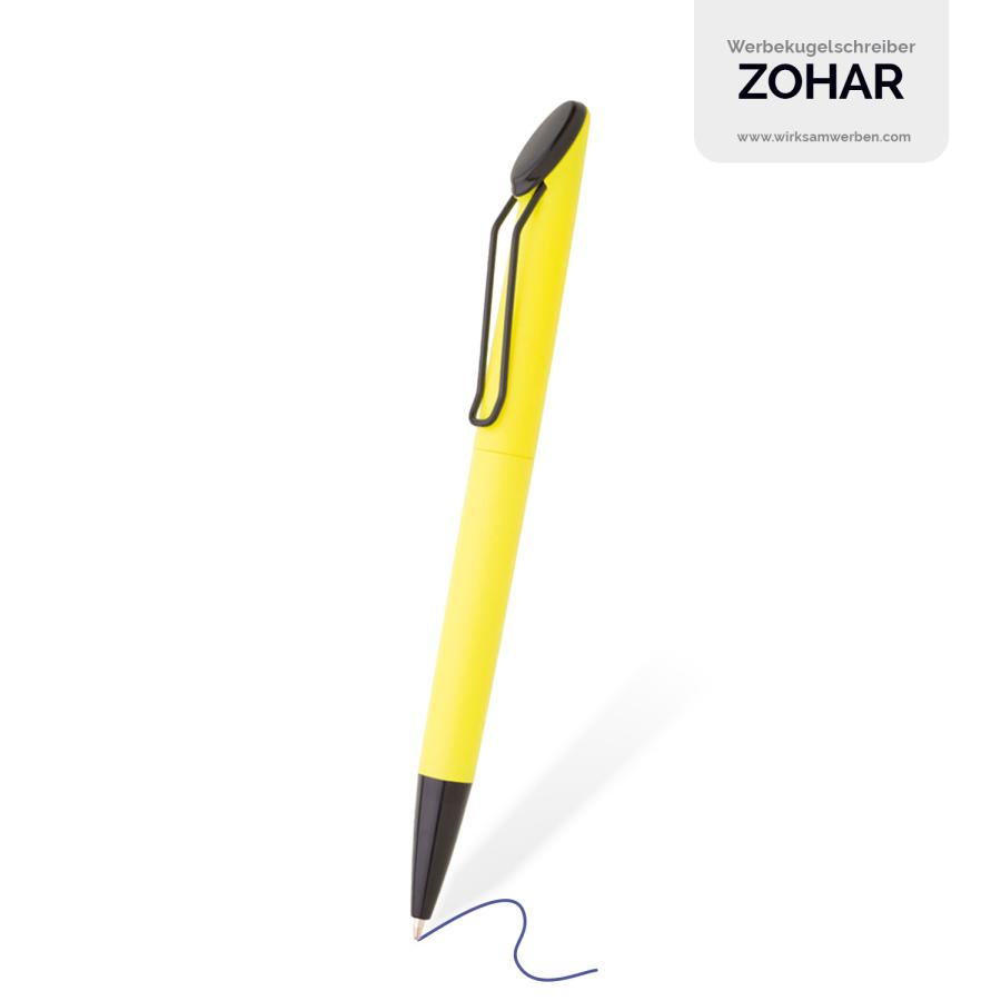 Mit seinen knalligen Neonfarben und der hochwertigen Verarbeitung ist der ZOHAR Kugelschreiber ein echter Blickfang. Neben dem klassischen Tampondruck oder UV-Druck kann zusätzlich ein individueller Epoxid-Aufkleber angefertigt und von uns präzise auf der Kappe angebracht werden.
