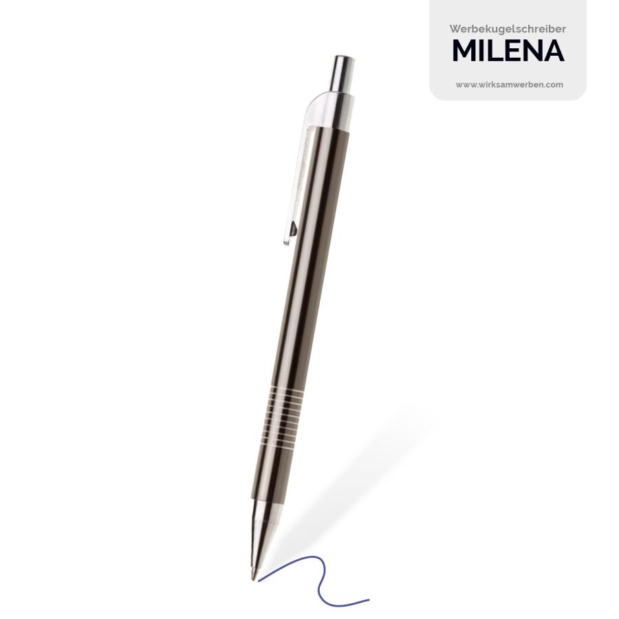 Der MILENA Kugelschreiber ist die perfekte Kombination aus Design, Funktionalität und Werbewirkung. Mit seiner schlanken Eleganz, den 10 gravierten Ringen ist er ideal für den Einsatz in Unternehmen und bei Werbeaktionen.