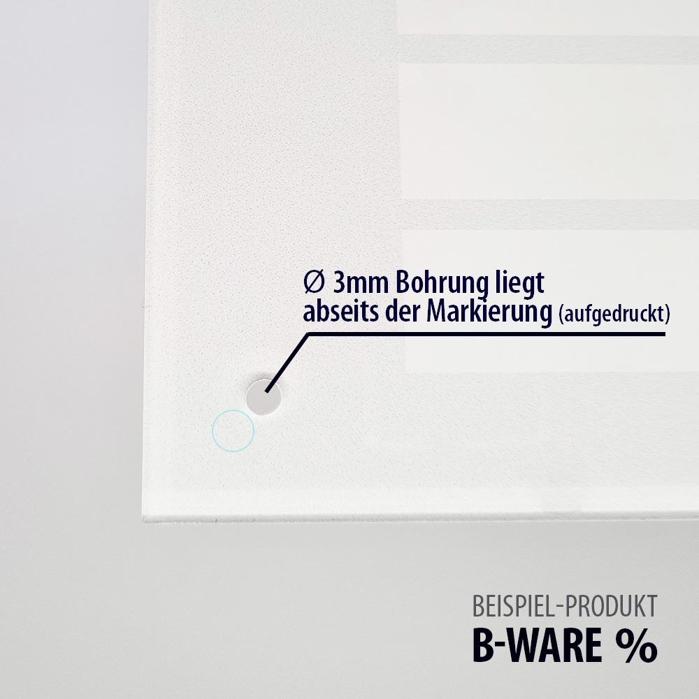 Tja, knapp daneben ist auch vorbei! Acrylglasschilder mit nicht ganz geglückter Bohrung. Die 4 Bohrungen, die etwas abseits der 4 aufgedruckten Markierungen liegen. Die Bohrgröße beträgt 3 mm.