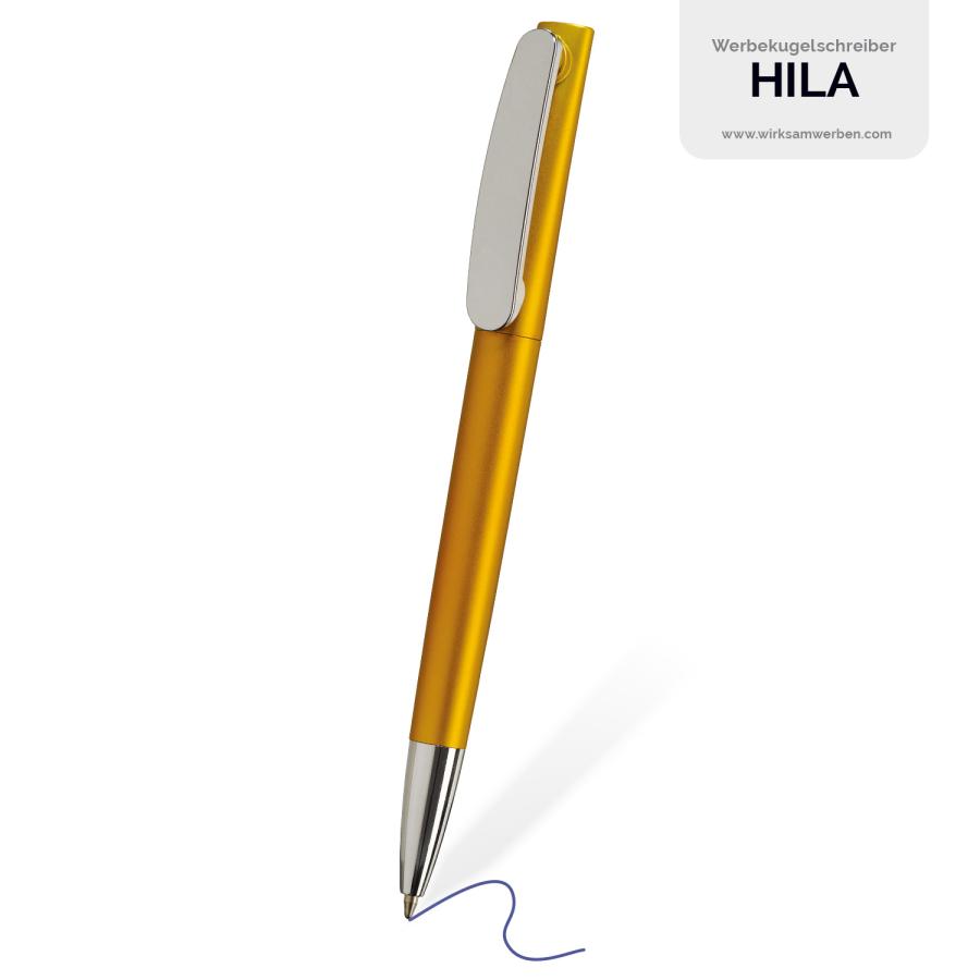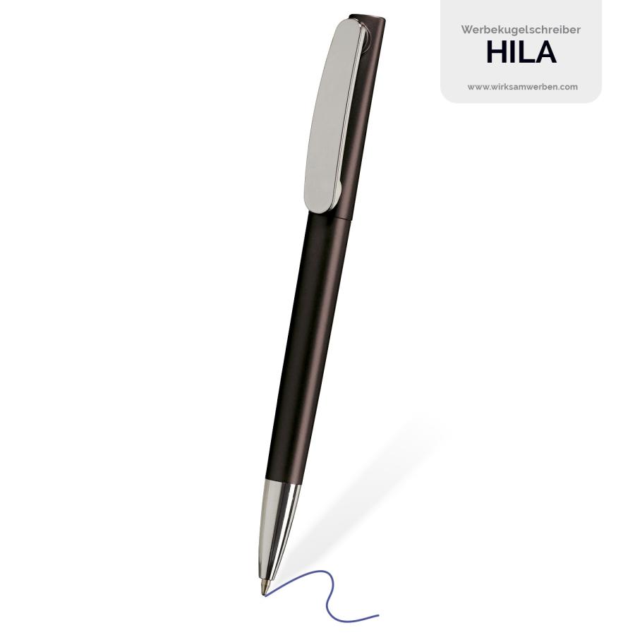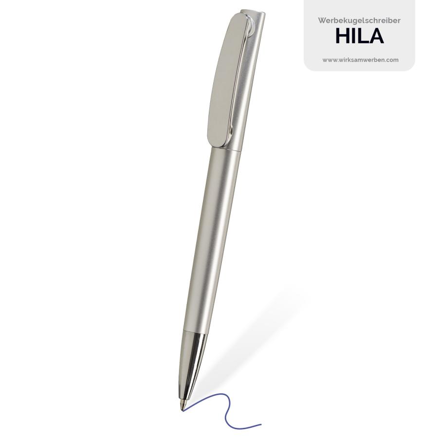 Veredeln Sie den HILA Kugelschreiber mit Tampondruck und präsentieren Sie Ihr Logo auf der großzügigen Fläche des Clips. Perfekt für personalisierte Werbegeschenke.