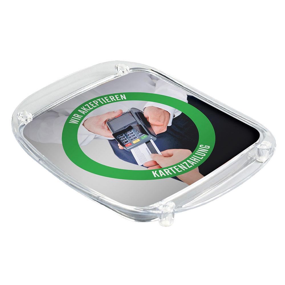 Zahlteller, Kassierteller, Geldschale mit eigenem Logo, Wunschmotiv individuell bedruckt, Acrylglas